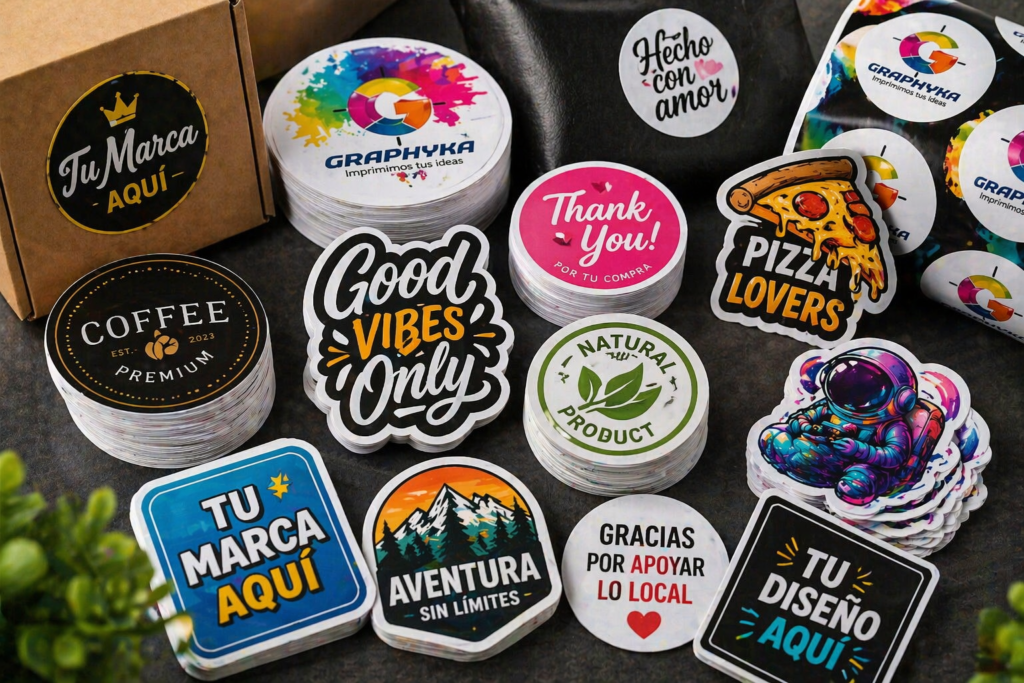 Impulsa tu marca con adhesivos personalizados ideales para productos, empaques, promociones y branding.