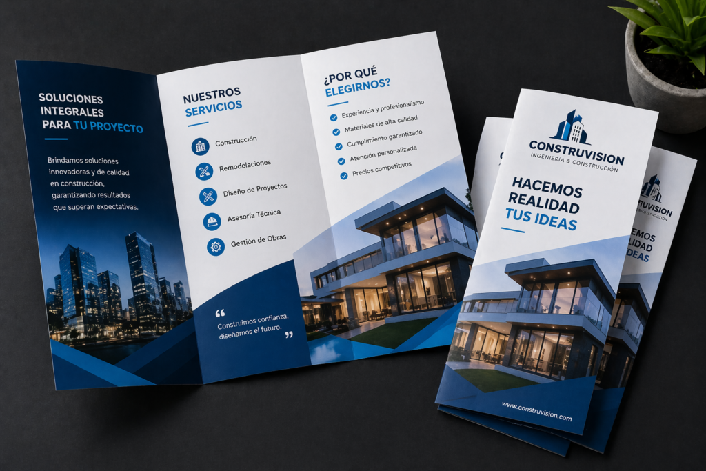 Los brochures son una herramienta clave para presentar tu empresa, productos o servicios de forma profesional y atractiva. Son ideales para generar confianza, explicar información importante y dejar una impresión sólida en tus clientes.
