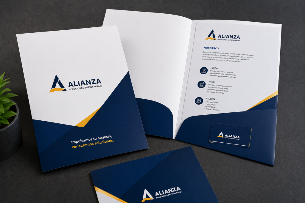 Las carpetas corporativas son un elemento clave para presentar documentos de forma profesional y organizada. Son ideales para reuniones, propuestas comerciales y presentaciones empresariales, elevando la percepción de tu marca frente a clientes.