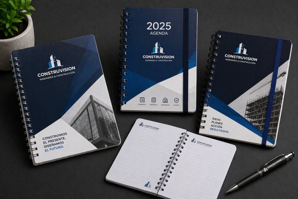 Los cuadernos y agendas personalizadas son una excelente herramienta de branding que mantiene tu marca presente en el día a día de tus clientes. Son productos útiles, duraderos y altamente valorados, ideales para empresas que buscan posicionarse de forma constante.