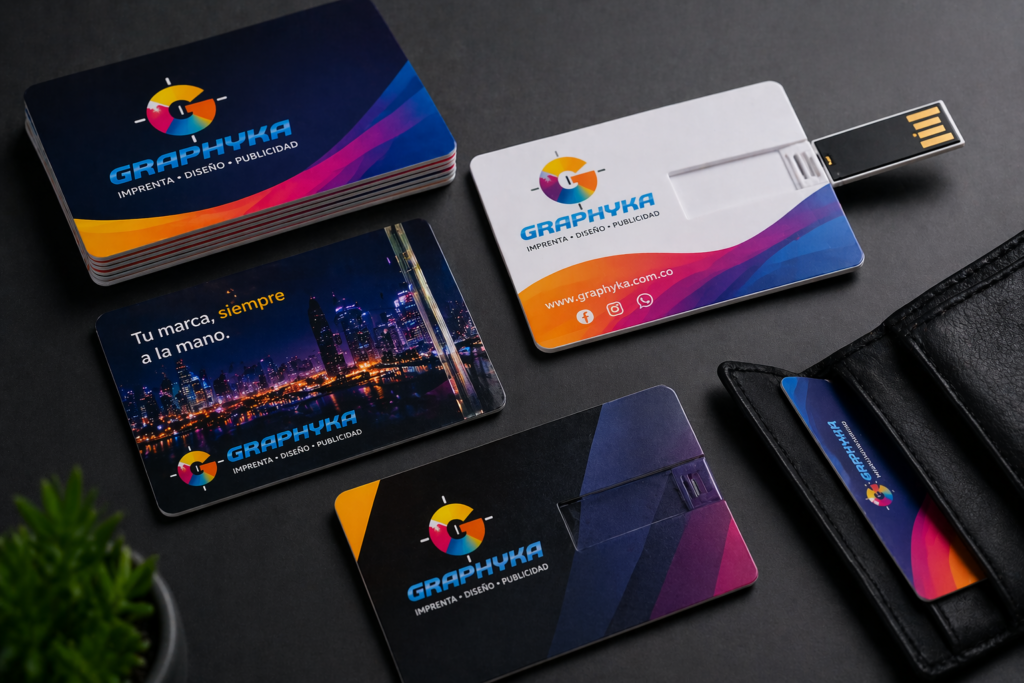 En Graphyka producimos memorias USB personalizadas con impresión de alta calidad, ideales para empresas, eventos y presentaciones profesionales.